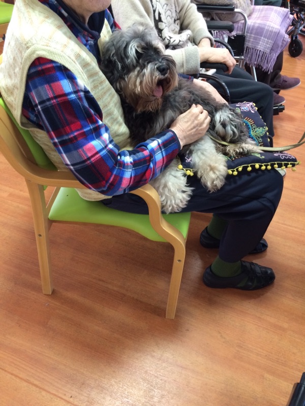 施設スタッフの方もセラピードッグの背中に顔をうずめたり(^^♪
