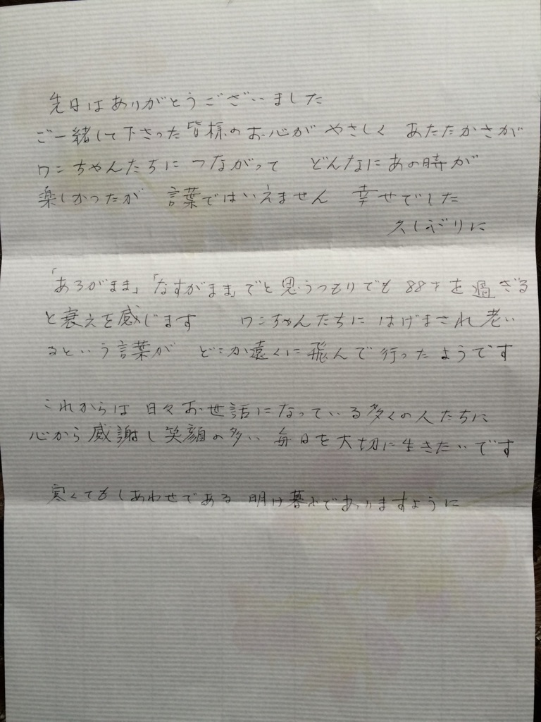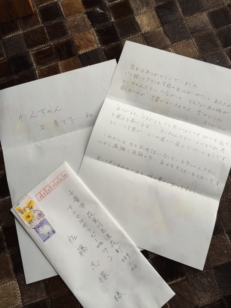 手に取りお名前を拝見すると先日セラピードッグとお伺いした施設の入居者様からです。