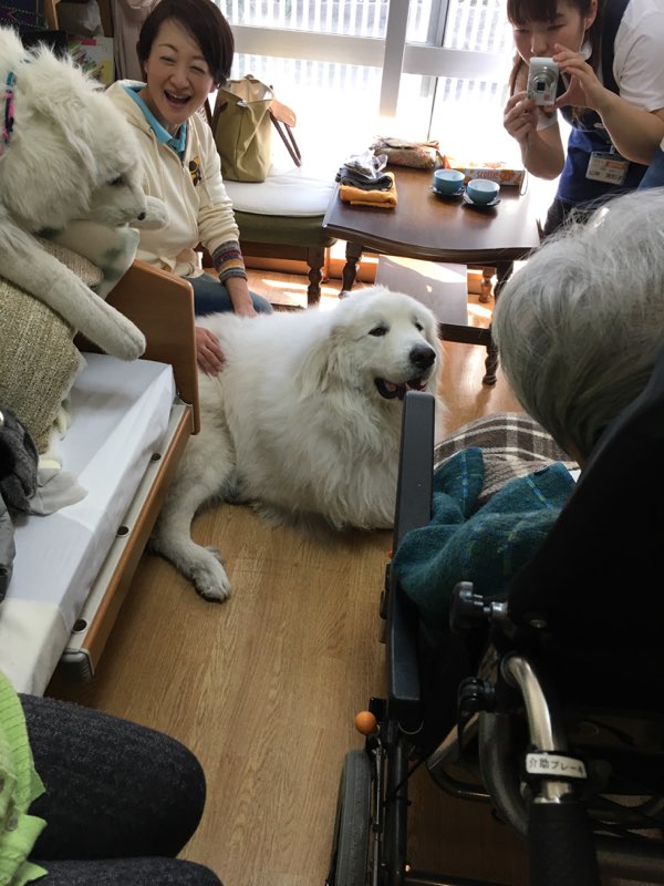 大型犬セラピードッグさんのオーナー様にご相談すると快くお引き受けくださいました。