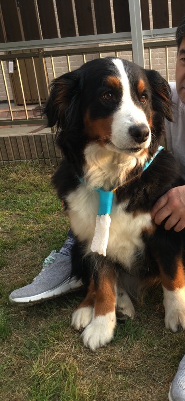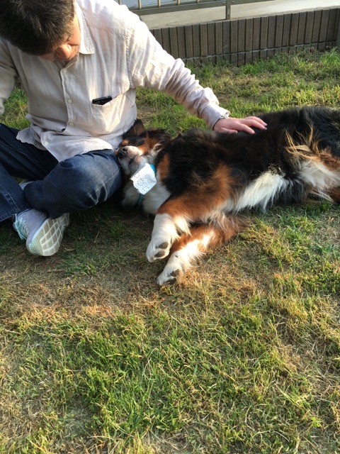 バーニーズマウンテンドッグと通りまでお迎えに出ると