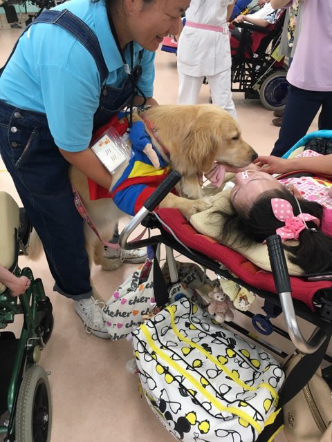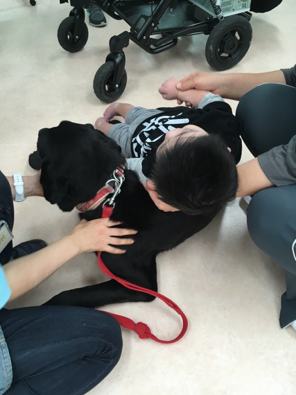 セラピードッグを目線の高さに持っていくと笑ってくださいます。