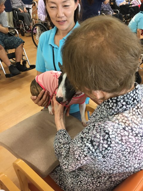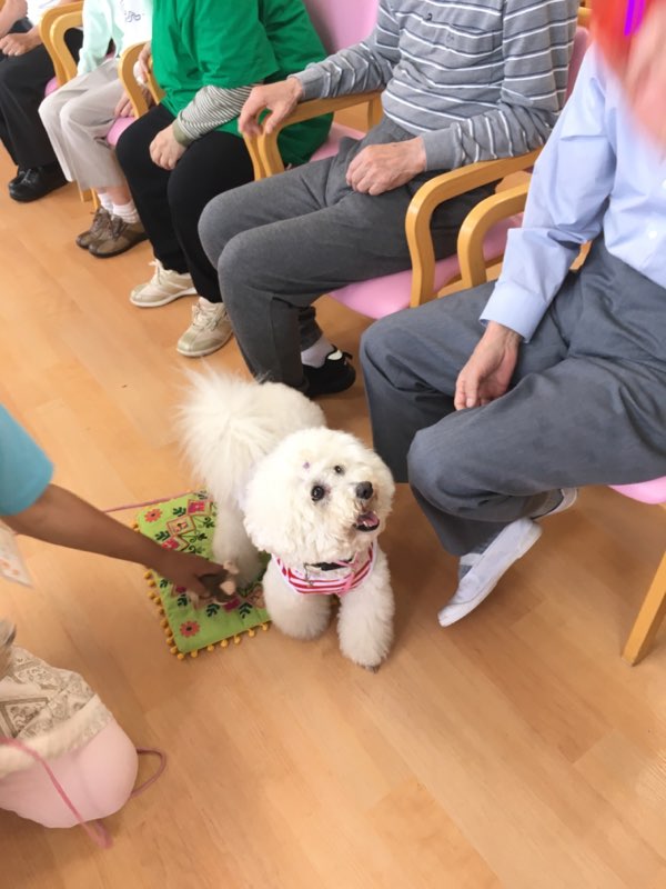 表情が乏しくなっている方もお膝にセラピードッグを乗せると満面の笑みです✨