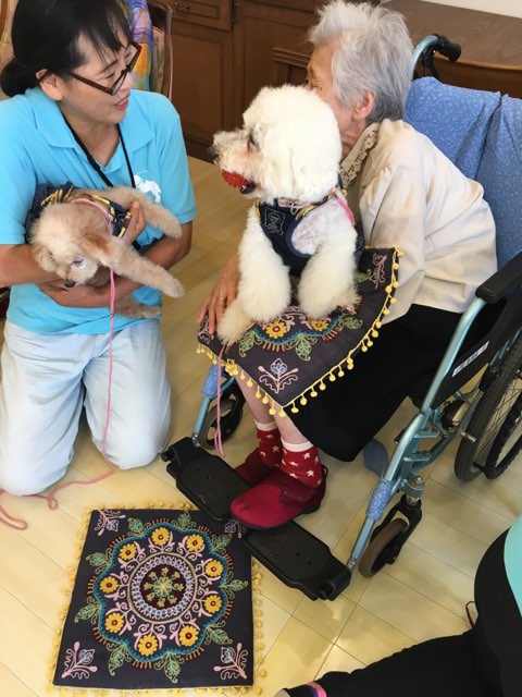 セラピードッグを乗せるクッションをとても気に入ってくださっていて笑顔がステキなお方。