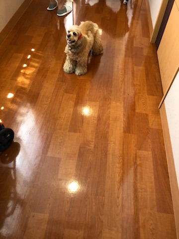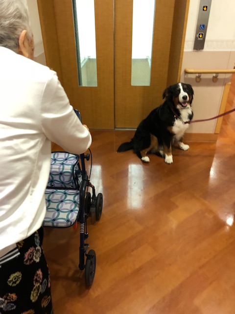 廊下を歩く時もセラピードッグさんは横について歩いたり、狭い場所では先に行ってこちらへいらっしゃるのをお待ちします。