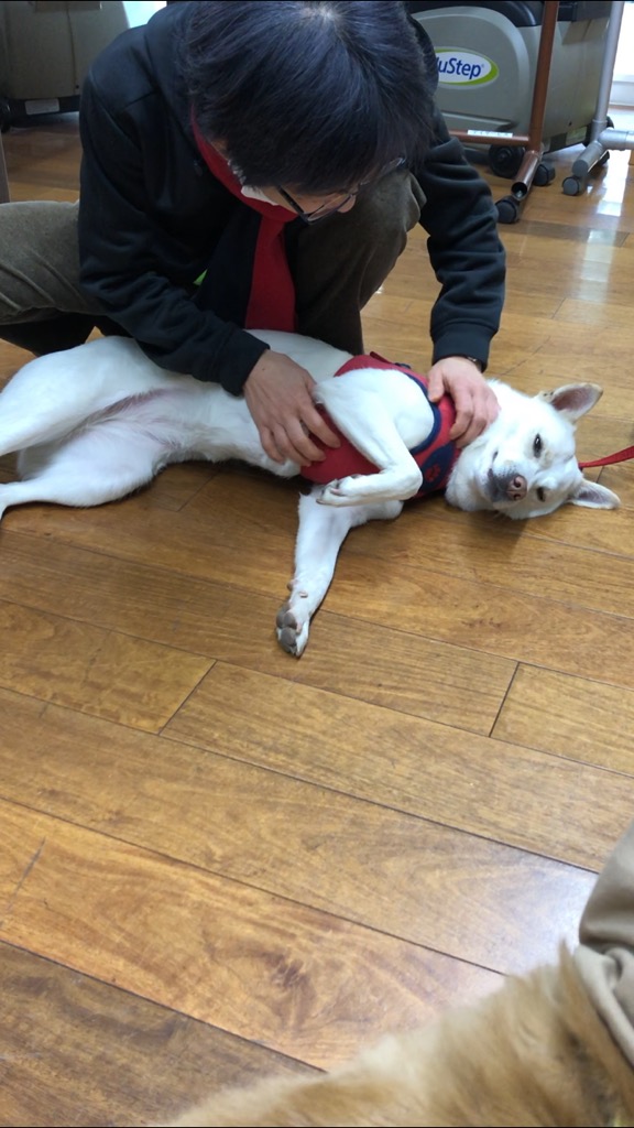 お膝に乗せた小型犬のマッサージをずーっとしてくださいました(●^o^●)